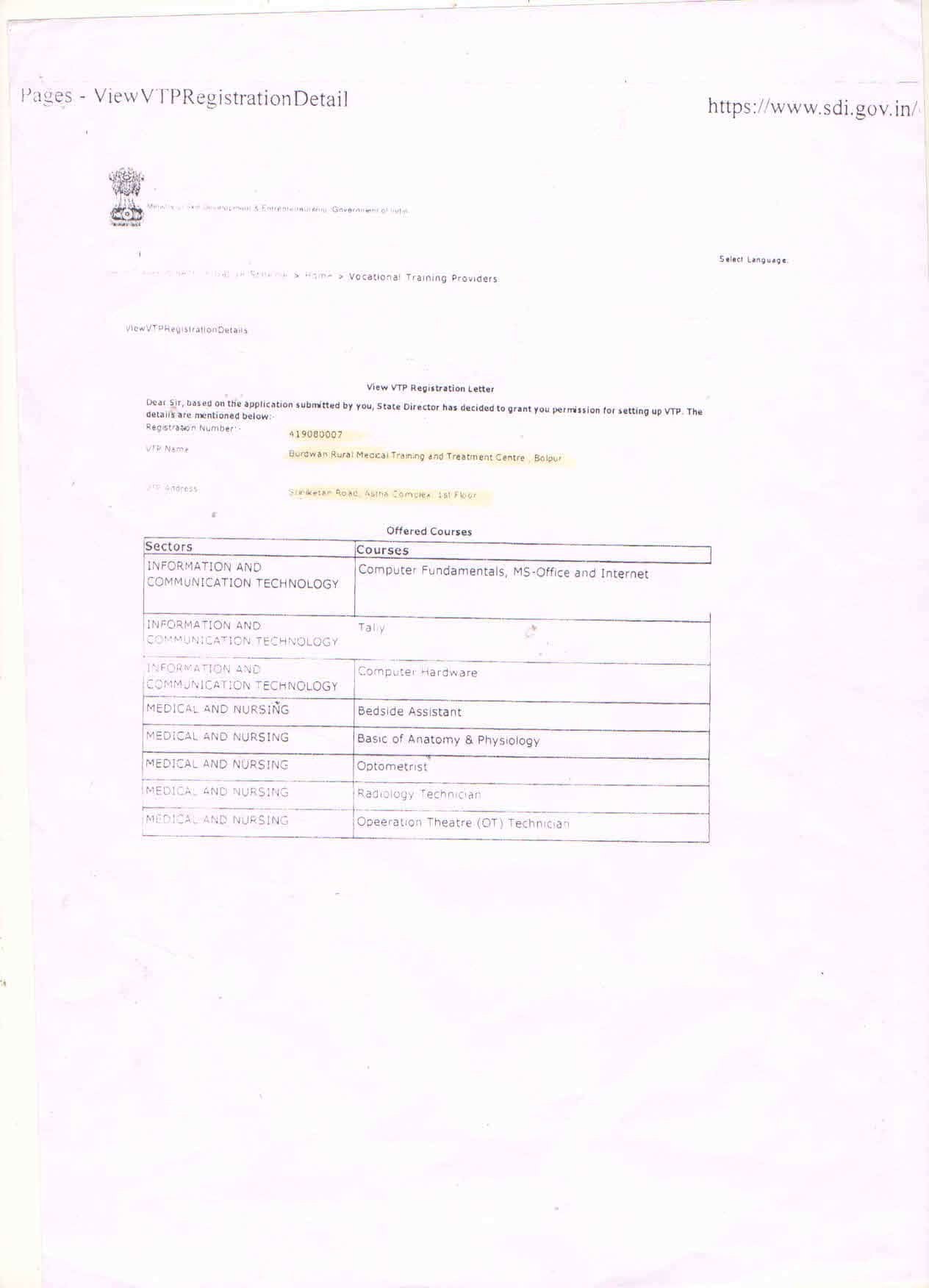 VTP Registration Letter